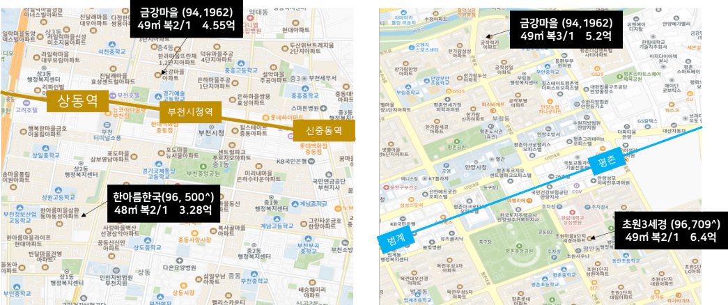 두 단지 모두 초역세권이라 충분히 1,2인 가구의 수요가 있어보입니다.