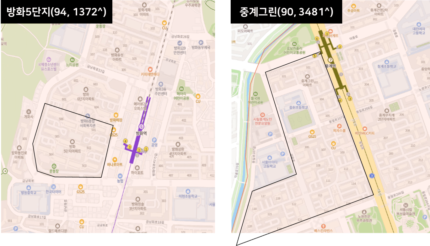 5호선이 있는 방화5단지가 조금 더 선호도가 있어보입니다.