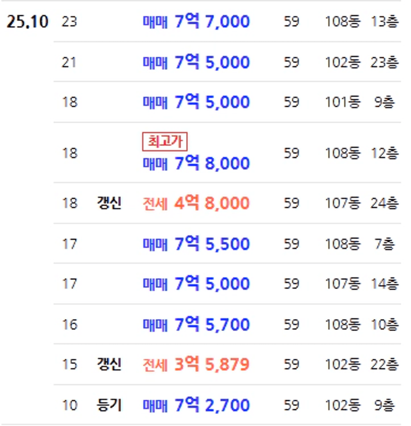 (실제로 이렇게 10/15~17 사이 거래된 급매건들이 많습니다)