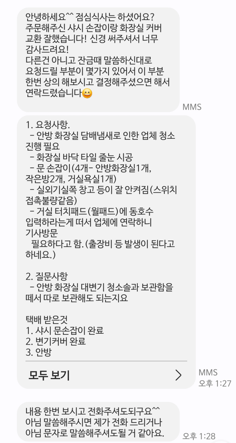 수리가 필요한 부분들은 빠르게 소통해서 정리해드릴 수 있었습니다.