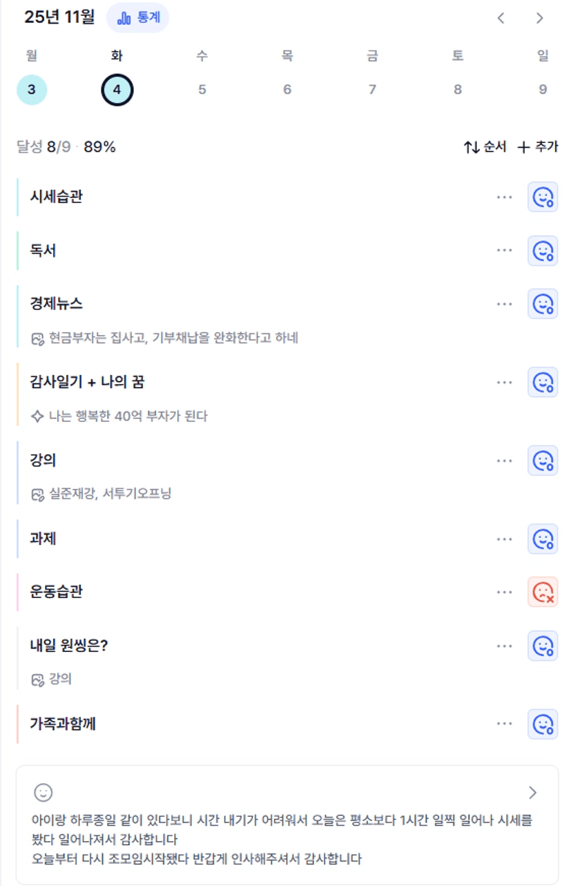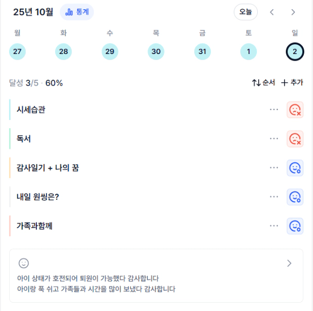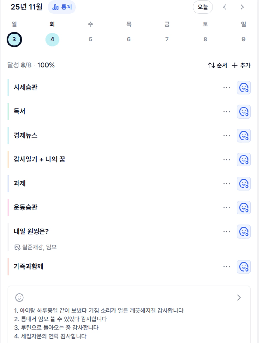 다행이 좋아져서 퇴원은 했는데 아직도 기침이 있나봐요..ㅠㅠ 채니님도 고생인데 건강 잘 챙기면서 감기 조심하시구요~ 바쁜 중에도 루틴 복귀와 조모임 응원합니다~♥