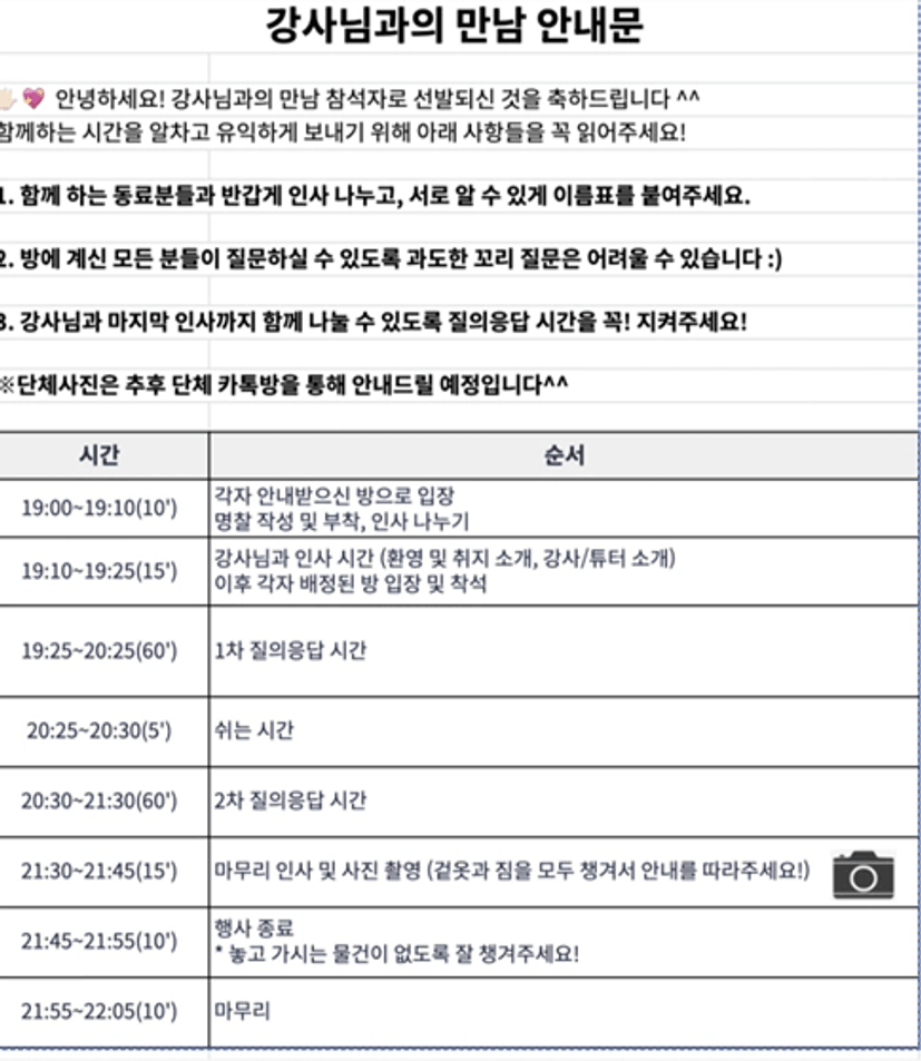 (질문 미리 준비해 가셔요! 메모메모!!)