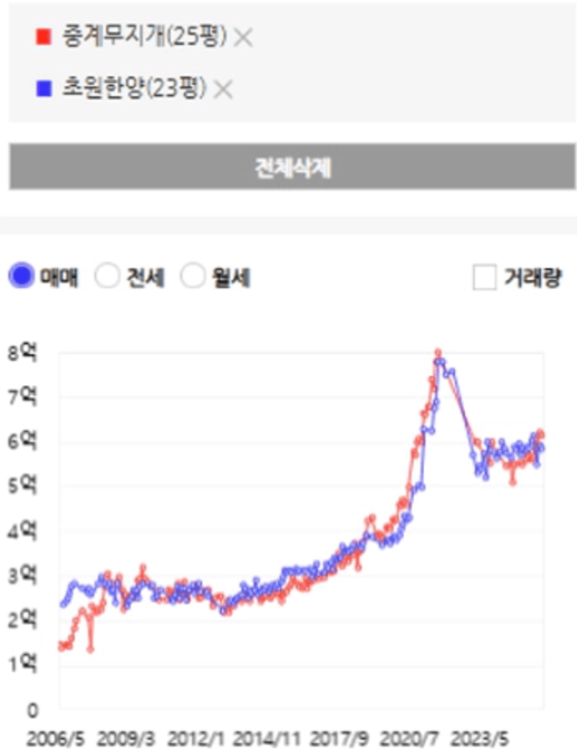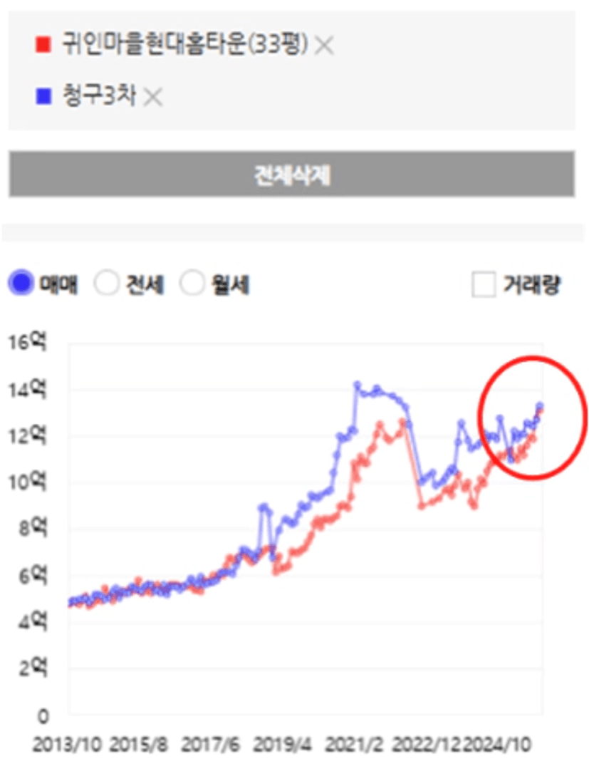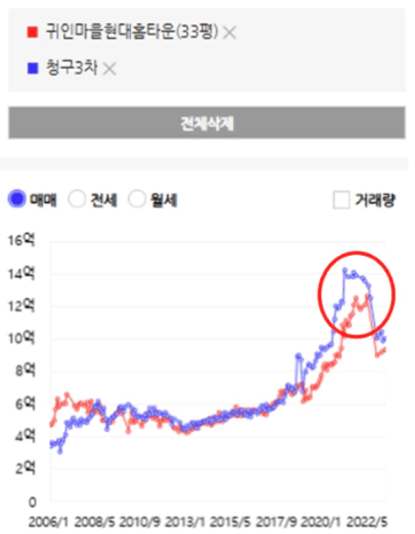 평촌 학군지는 빠르게 가격이 회복하고 전고를 넘어간 반면