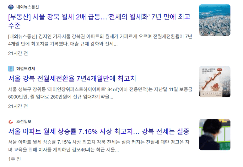 바로 어제도 강북월세가 2배 올랐다는 기사가 나왔더라구요.
