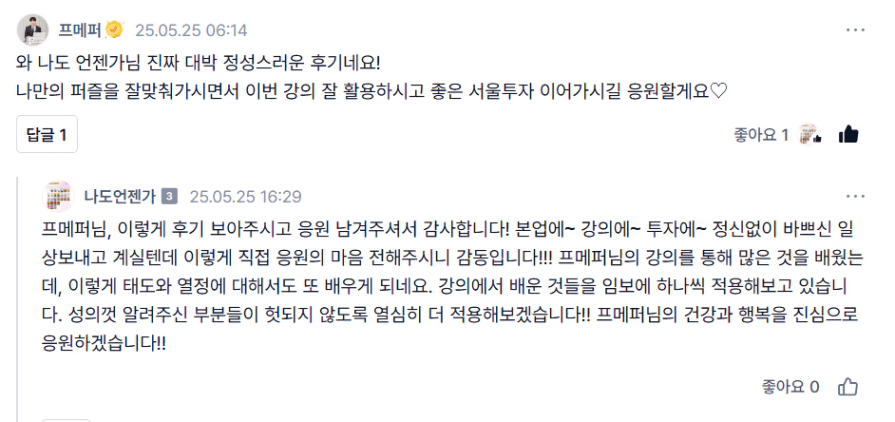 저 또한 배운 것을 제 투자와 삶 속에서 실천하며 성장해가겠습니다.