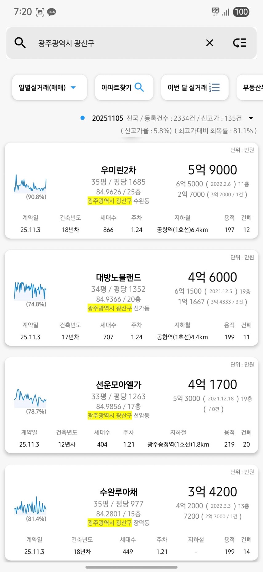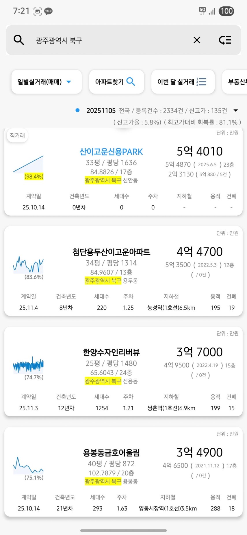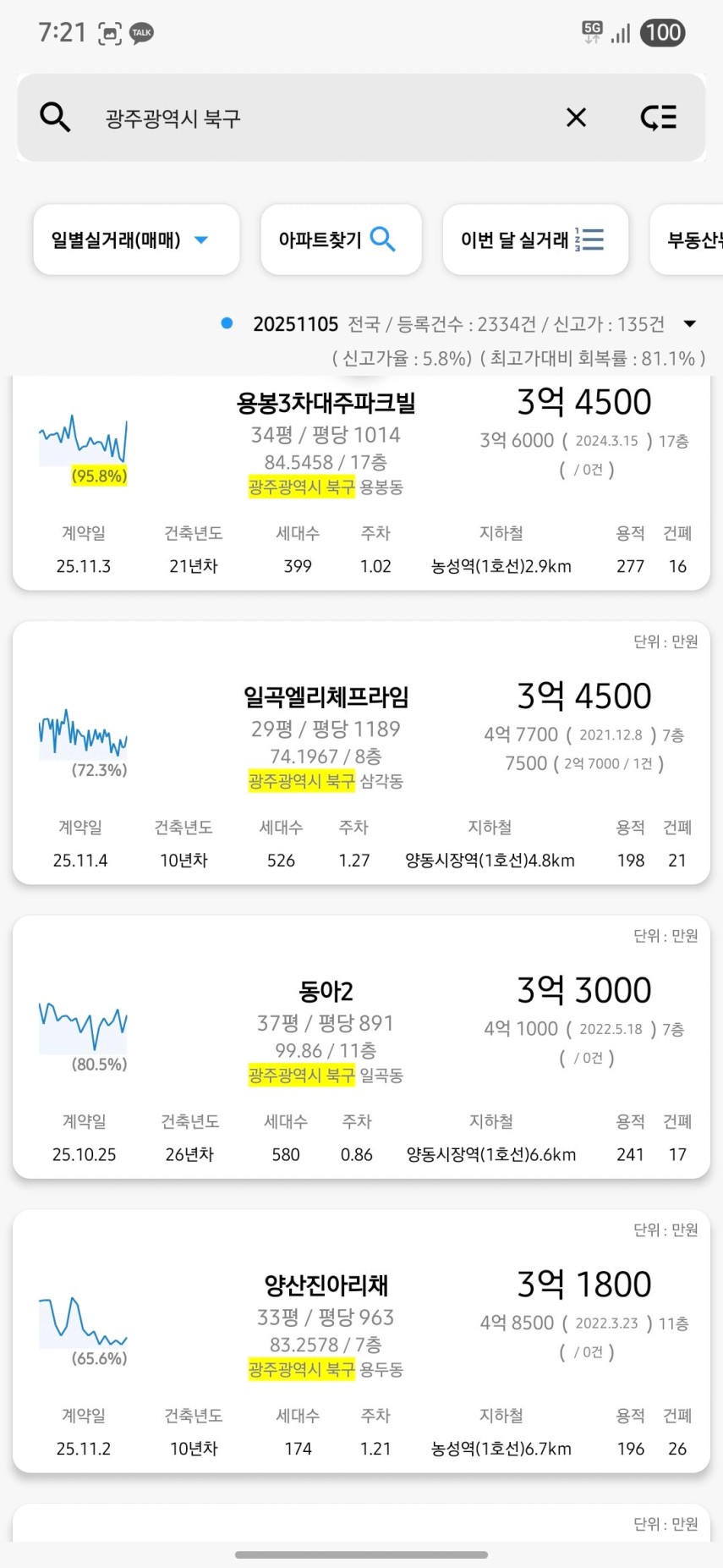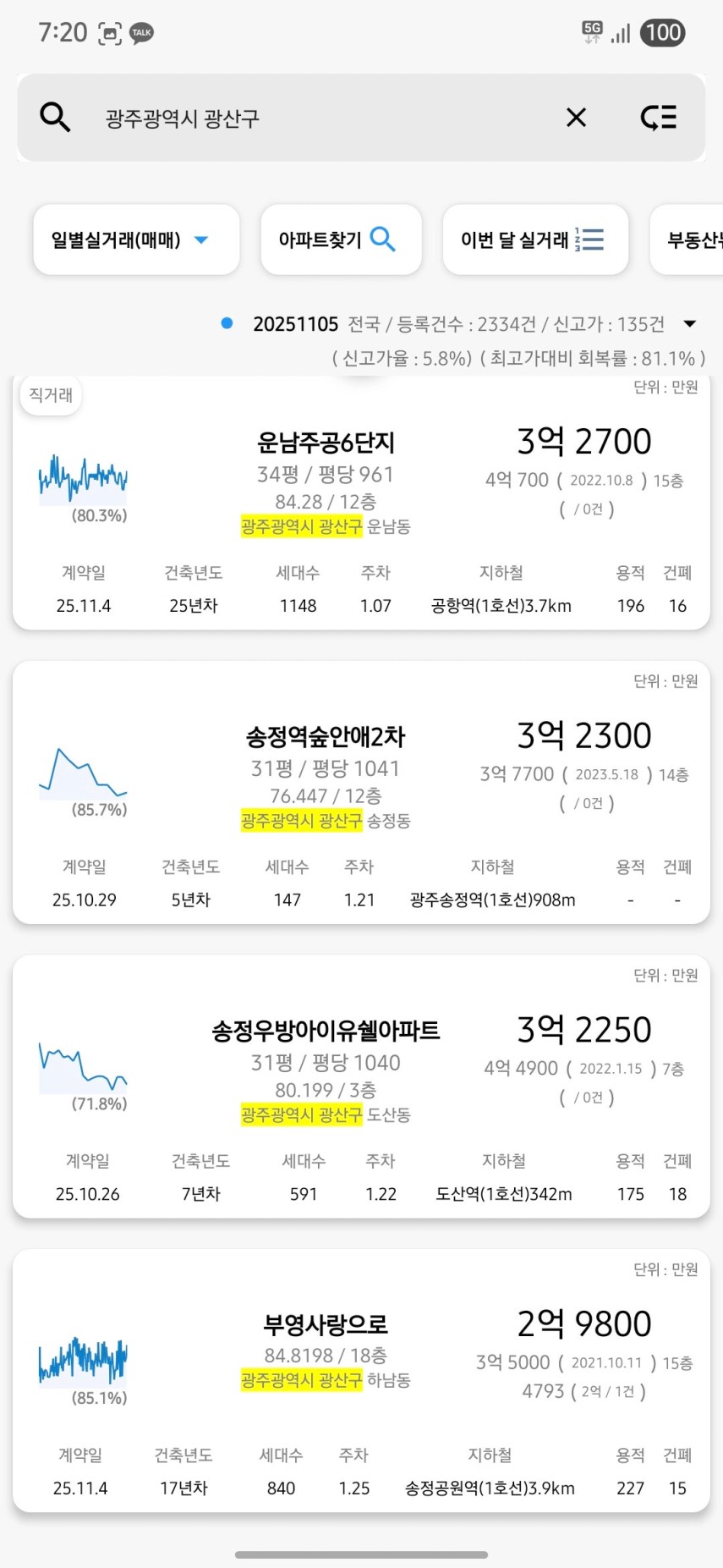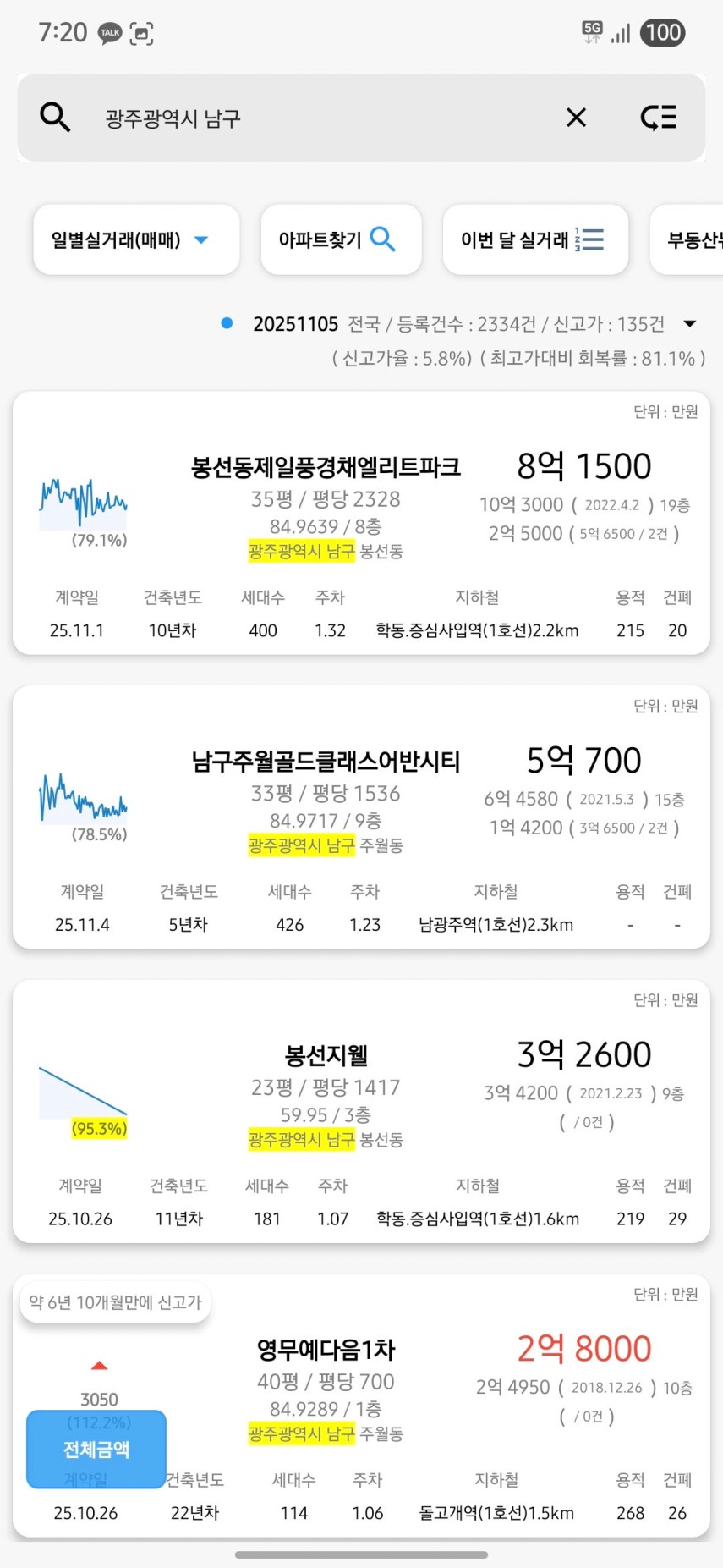 호가 봉선풍경채 8.4억도 싸다고 생각했는데 실거래가 8.1억이라니.. 진짜 싸도 너무 싸다