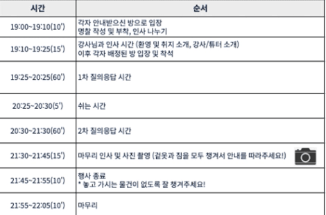 그리고 오늘의 강사님과 튜터님들은 비공개이기에 7시10분에 맞춰 등장해주실 분들은