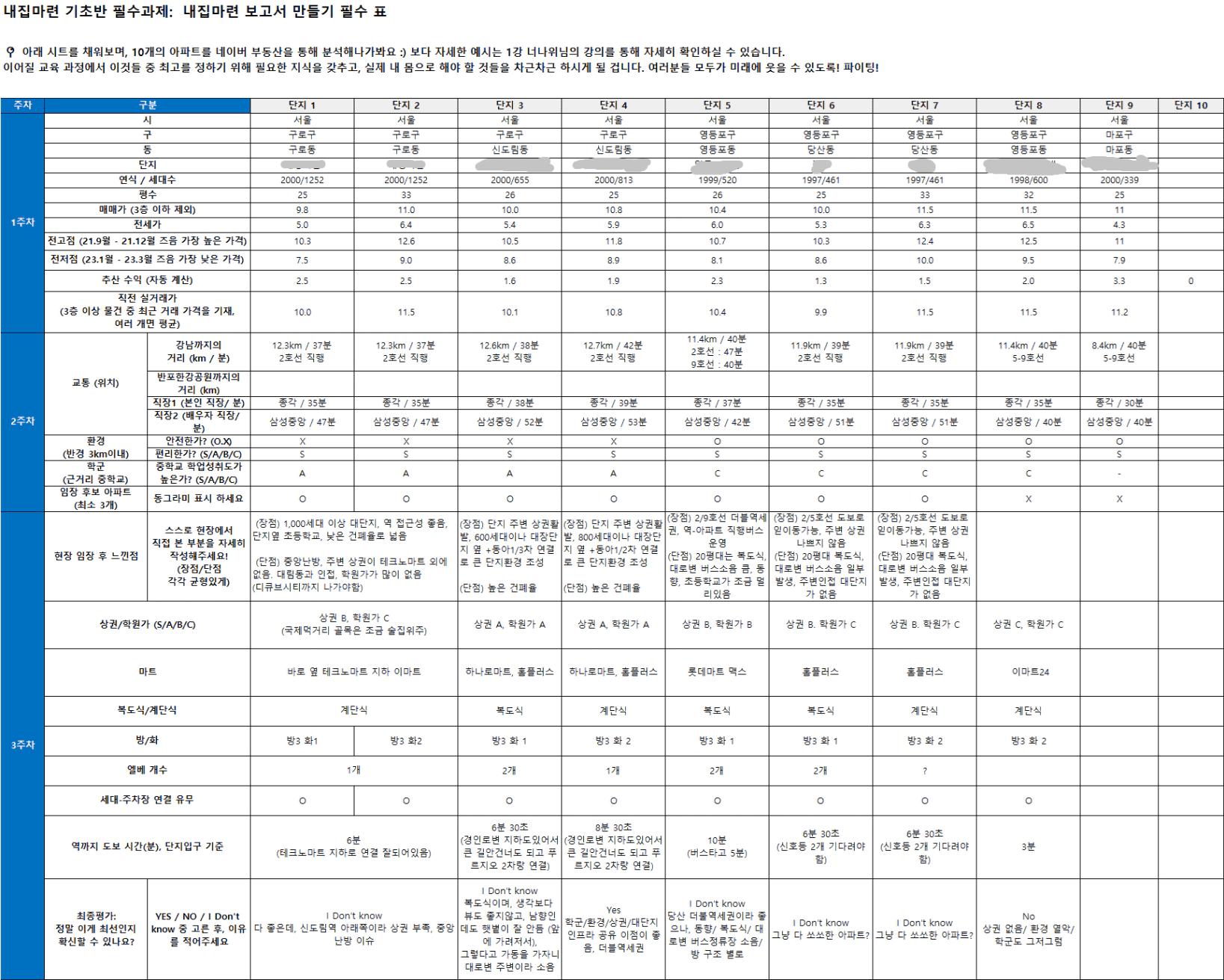 내마중 수강을 거의 다 마칠 무렵, 그 때까지 저희 부부는 막상 어느 아파트의 매물 임장을 시도조차 못하고 있었어요.