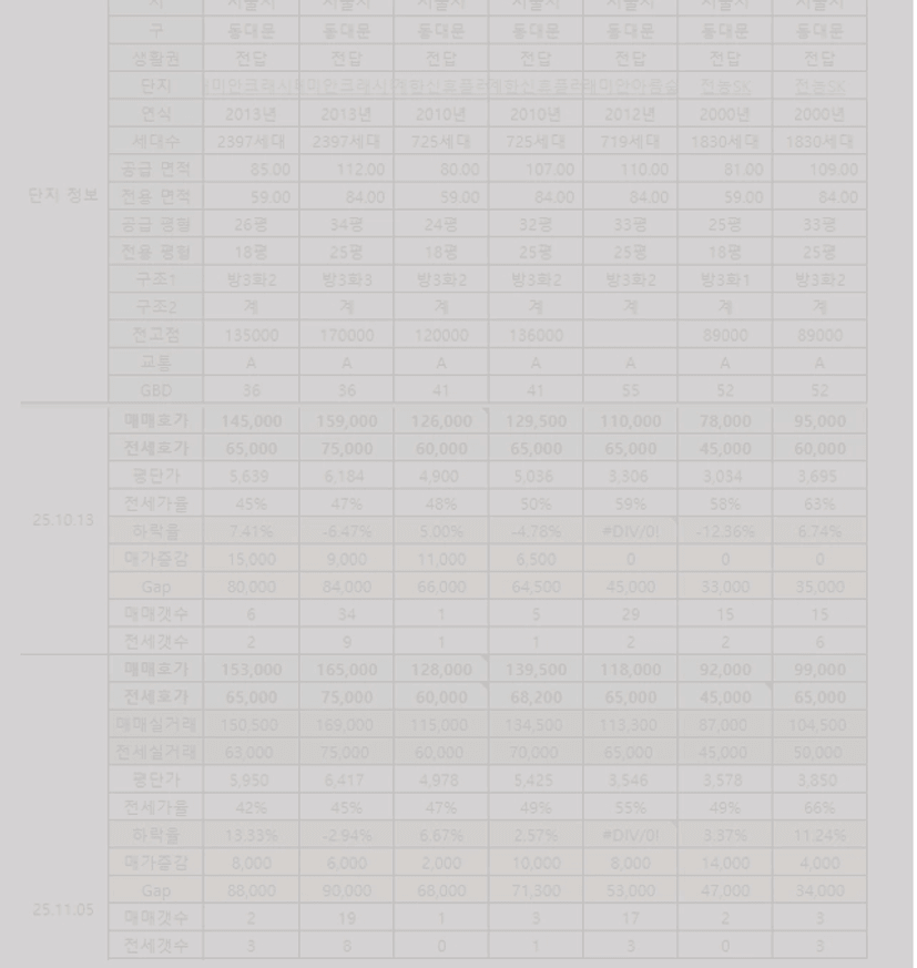 전답 생활권도 11월 들어 전세 갯수가 빠르게 소진되고 있다. 공급이 많았던 동대문 마저도...전세 줄어드는 속도가 무섭다. 대단지인 크레시티 마저 전세가 59,84 모두 합쳐 11개. 10월 15일 이전에는 전답 의 선호단지들의 호가가 무섭게 올랐었는데 비교적 10.15 대책 이후에 조금 상승세가 잠잠해진듯해보임. 그래도 호가가 오르긴 오름! 전농 sk 59 호가를 9.2로 내놓았는데 욕망호가 같다. 전농SK 59가 너무 올라버려서 84가 비교적 저렴한 편!. 그래도 전농 SK 84도 실거래 10억을 찍었다.