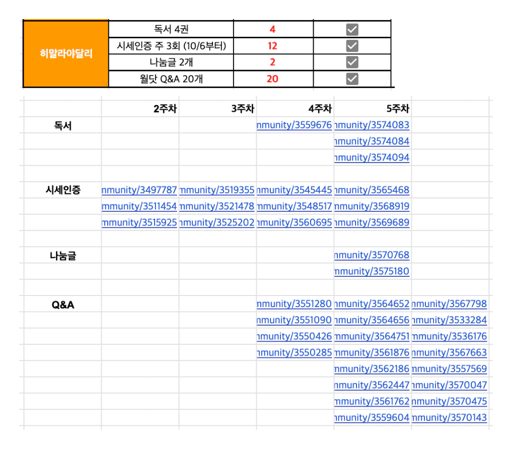 ✔️ 월학에서 하던 나눔글과 Q&A 루틴 목표 채우기 완료