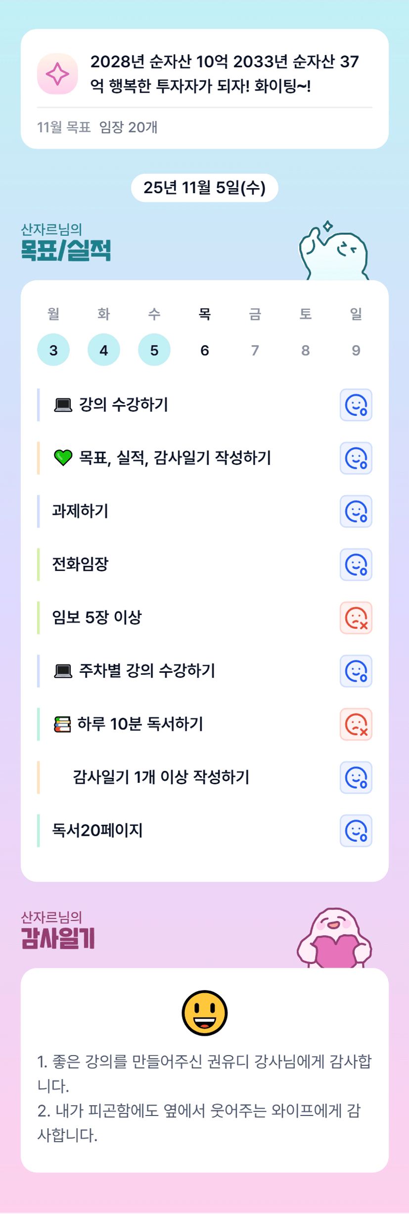 산자르님 완강하시느라 고생 많으셨습니다!!