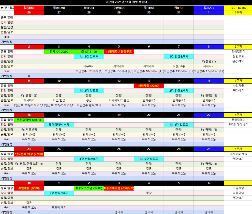 매임까지 해보고, 투자 우선순위도 매겨보니 왜 전임을 평소에 더 해야 하는지를 아주 조금이나마 느낄 수 있는 시간이었다.