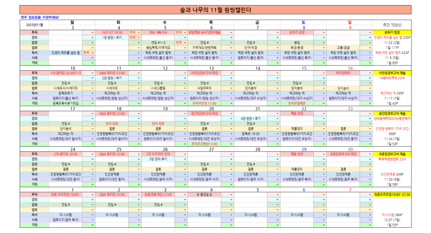 다시 달릴 준비를 하면서 11월 계획을 세워보았습니다.