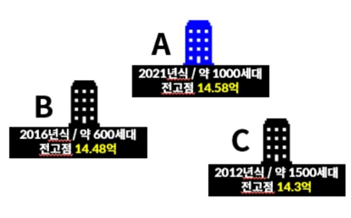 하지만 전고점만 보고 단지를 선택했다가는 같은 돈으로 살 수 있는 더 좋은 단지를 놓치게 될 수도 있습니다.