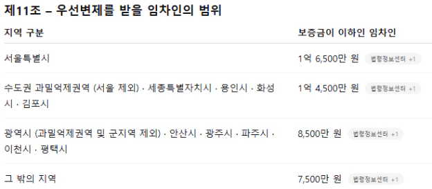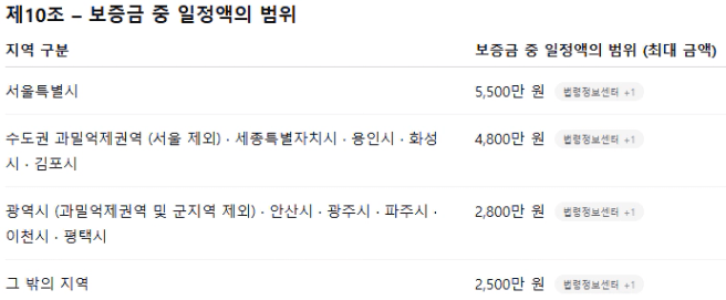 즉, 선순위 근저당이 있더라도 법이 정한 소액 범위 안에서는 은행보다 먼저 돌려받을 수 있는 권리입니다.