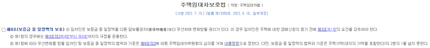 제8조 및 시행령 제10조에 '보증금 중 일정액을 우선하여 변제받을 권리'라고 나와 있습니다.