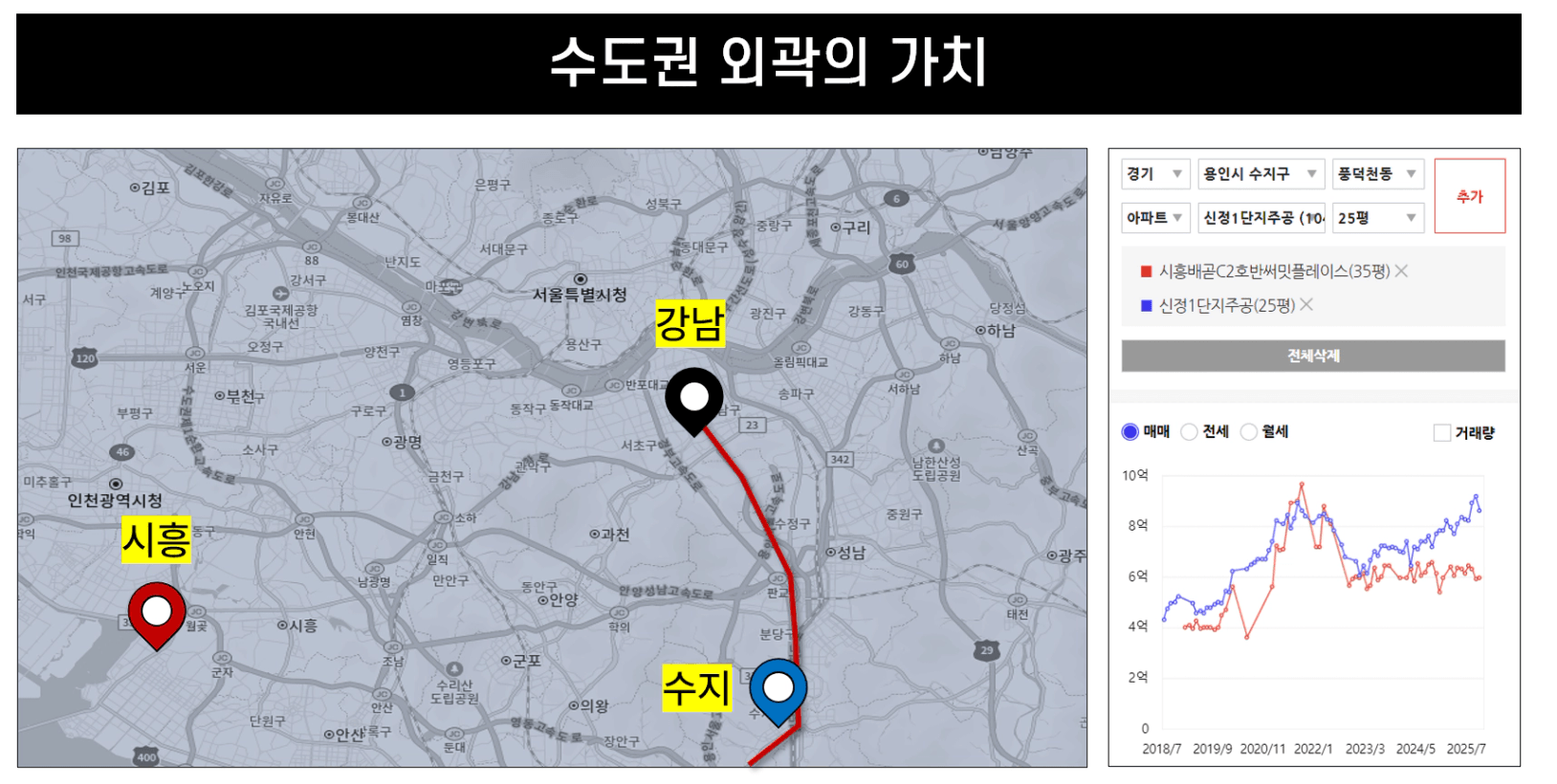 수도권 시장에서는 강남 접근성이 중요한 가치입니다.