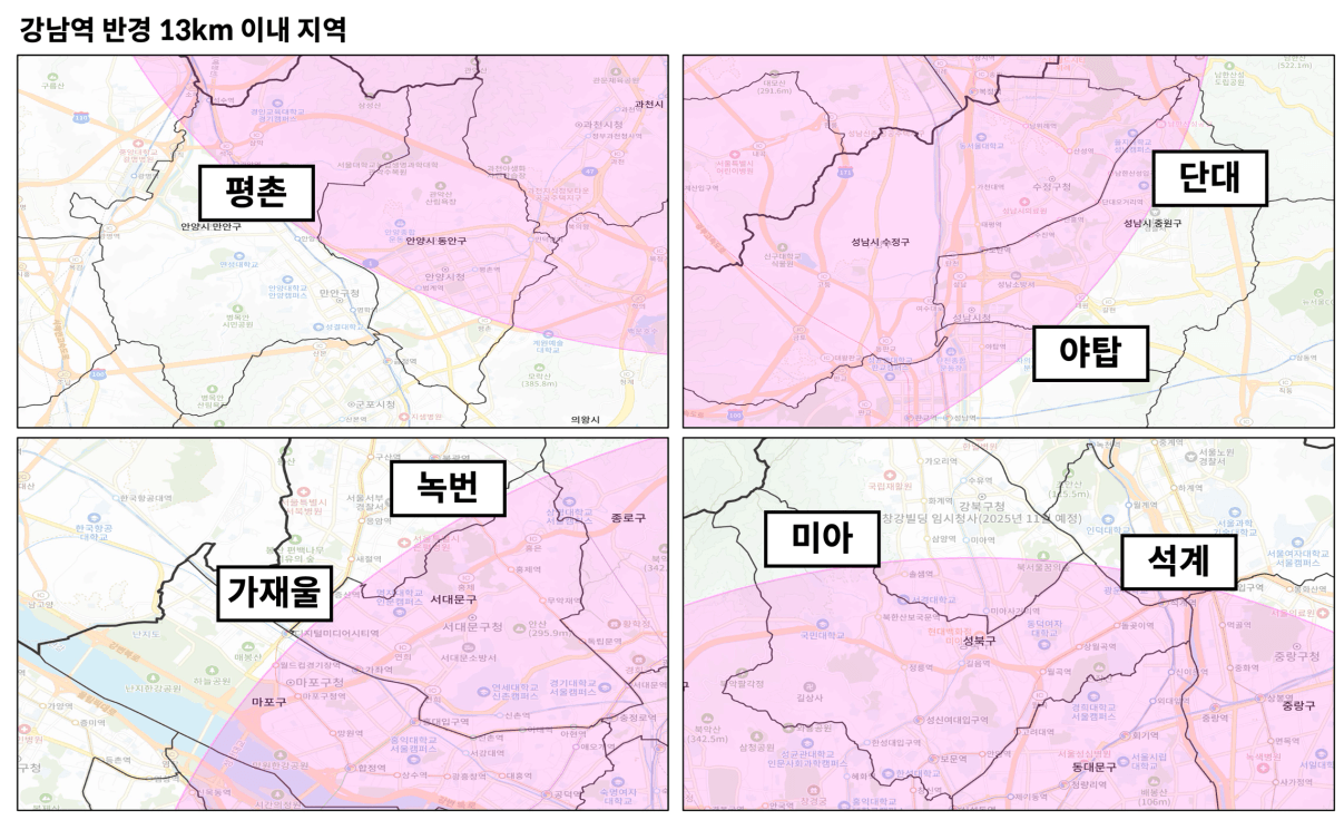 야탑, 평촌 등 강남 접근성이 준수한 곳