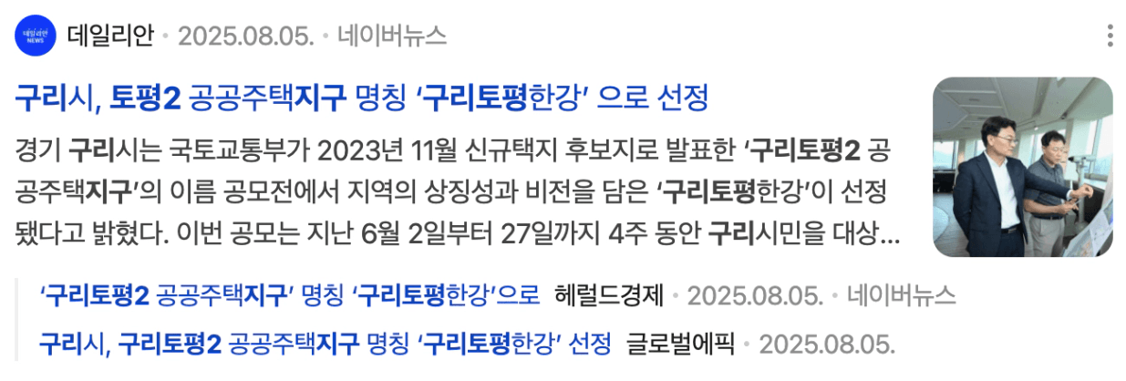구리토평2지구는 최근 시민들의 공모전을 통해