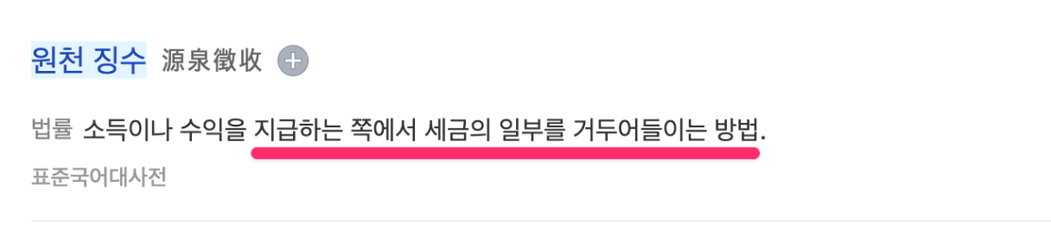 그리고 이걸 원천징수(源泉徵收) 라고 불러요.