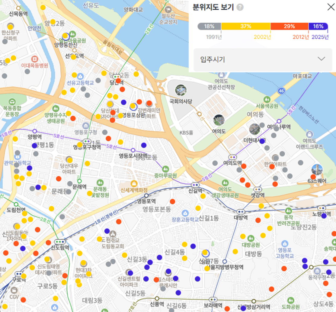 입주시기 분위지도를 캡쳐한 것과 동일하게