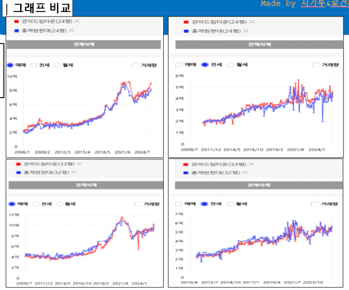 네 번째, 가격 비교하기(현재 가격과 전고점, 두 단지의 가격흐름, 최종 선호도 정리)