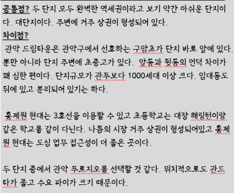 세 번째, 비교하는 단지들끼리의 공통점, 차이점