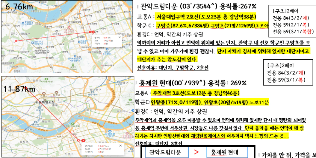 첫 번째는 해당 단지의 위치와 강남의 물리적 거리를 확인합니다.
