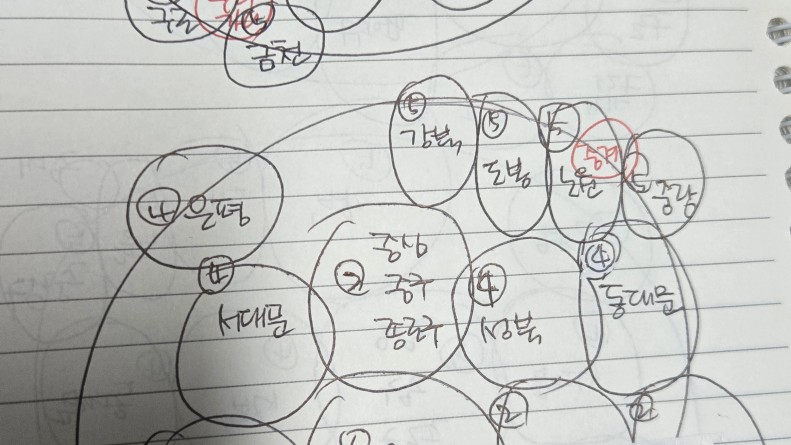 이번 기회에 서울 25개 구를 정확하게 알고 그릴 수 있게 되었다.
