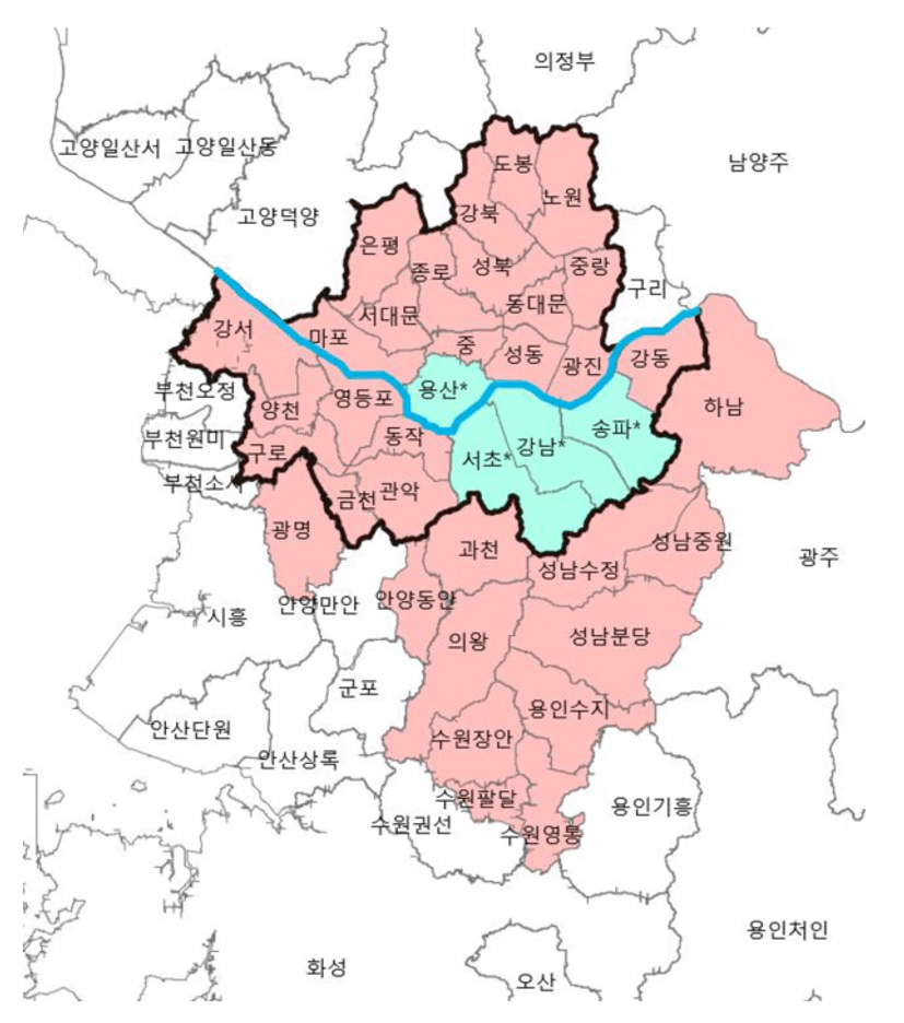 서울 25개구와 경기도 핵심 지역 입지요소를 통해