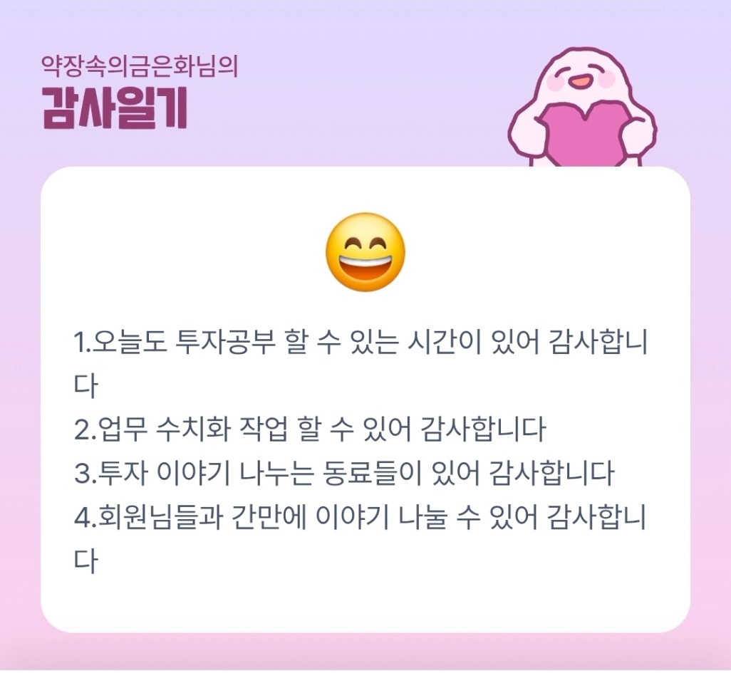 은화조장님 오늘도 고생 많으셨습니당!! 💕