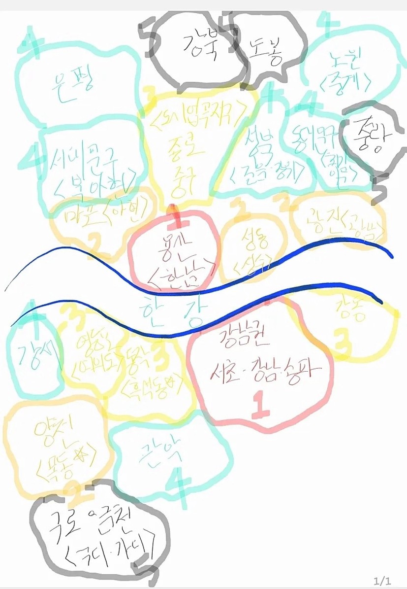 서울의 25개구 그리고 수도권을 모두 알고있는지를 강남권, 강북권으로 나눠보면서