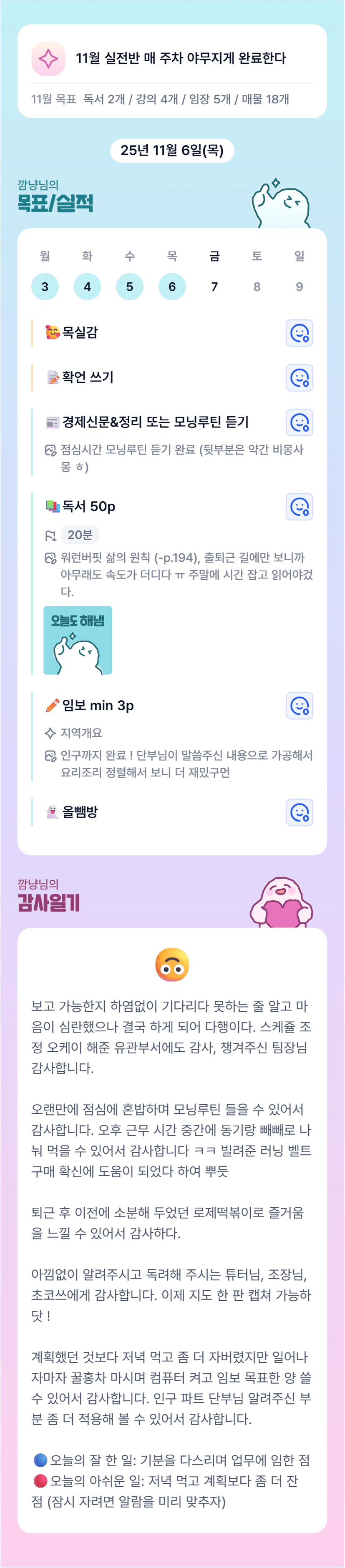기분다스리고 일하기가 쉽지 않은데요~ 고생많으셨어요! 오늘도 홧팅입니다 ㅎㅎ 내일 뵈어요♥