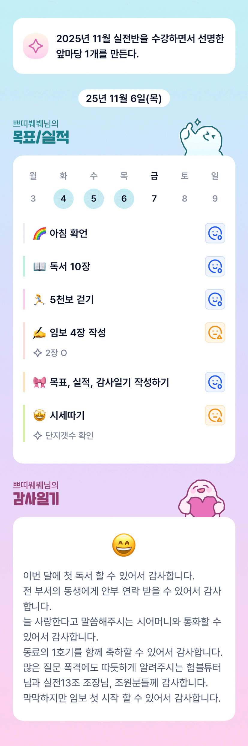붸붸님🥰 11월 실전도 파이팅이에요💞 할 수 있따!!! 실전반 선배님~ 온맘 다해 응원해요🤗