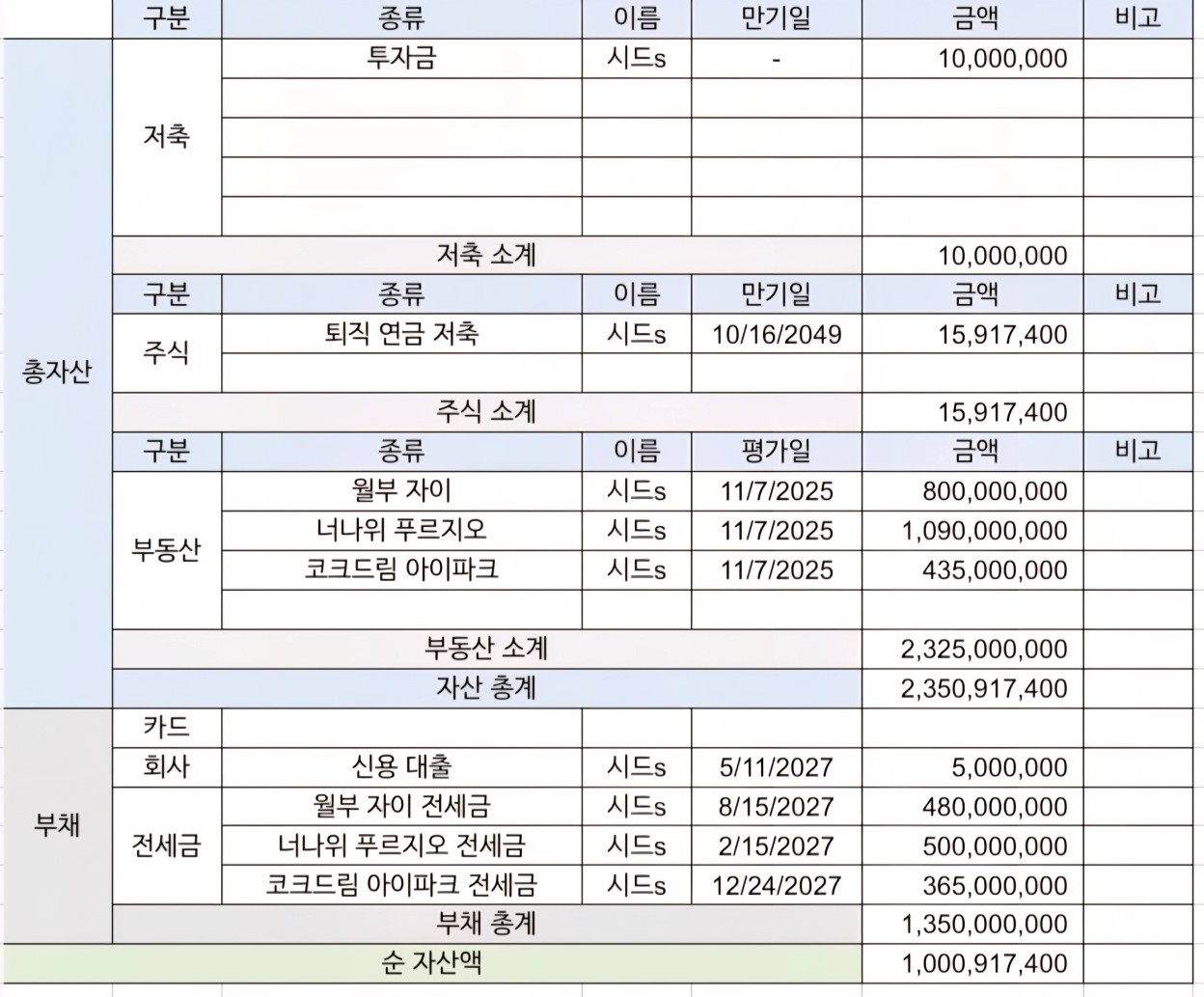 확인해보고 싶은 마음에 우리집 대차대조표를