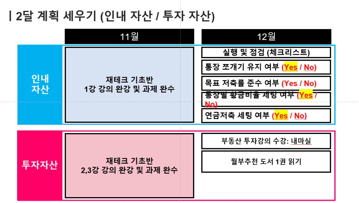 2️⃣ 2달 계획 확인 후, 11월 한달 간의 목표와 확언 부분 작성