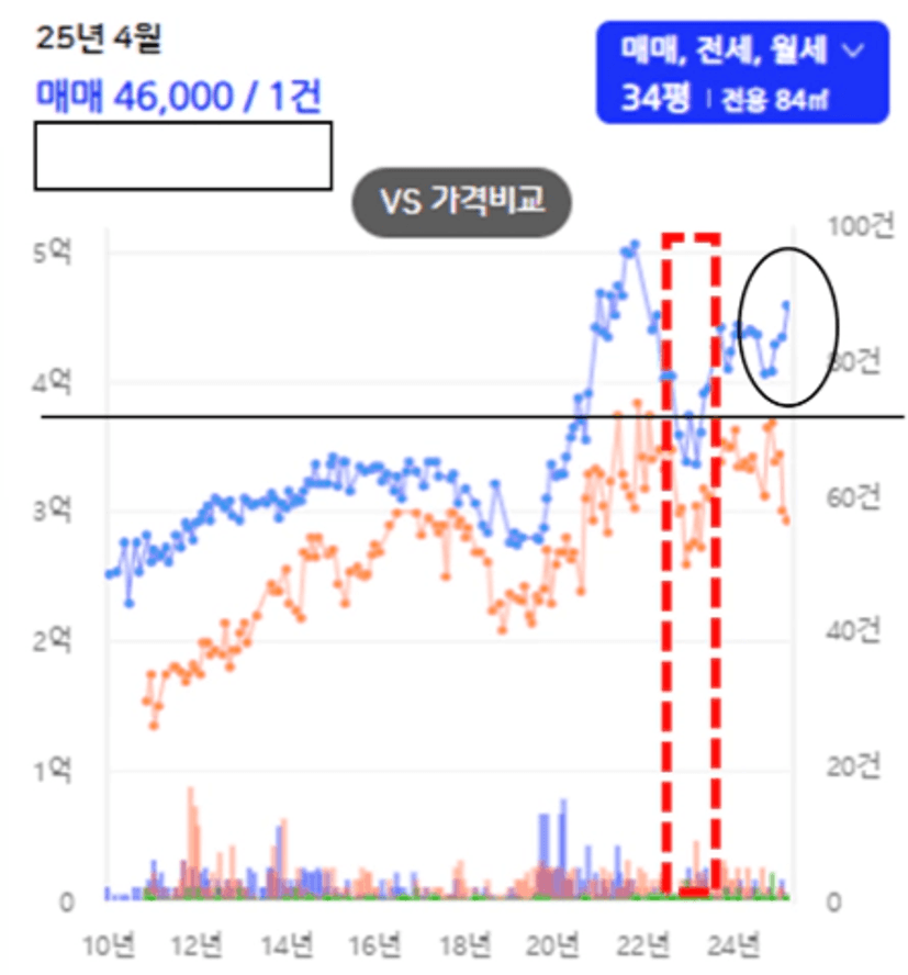 그때 당시에는 전세가가 하락을 멈추고 회복하고 있는 시점이었고