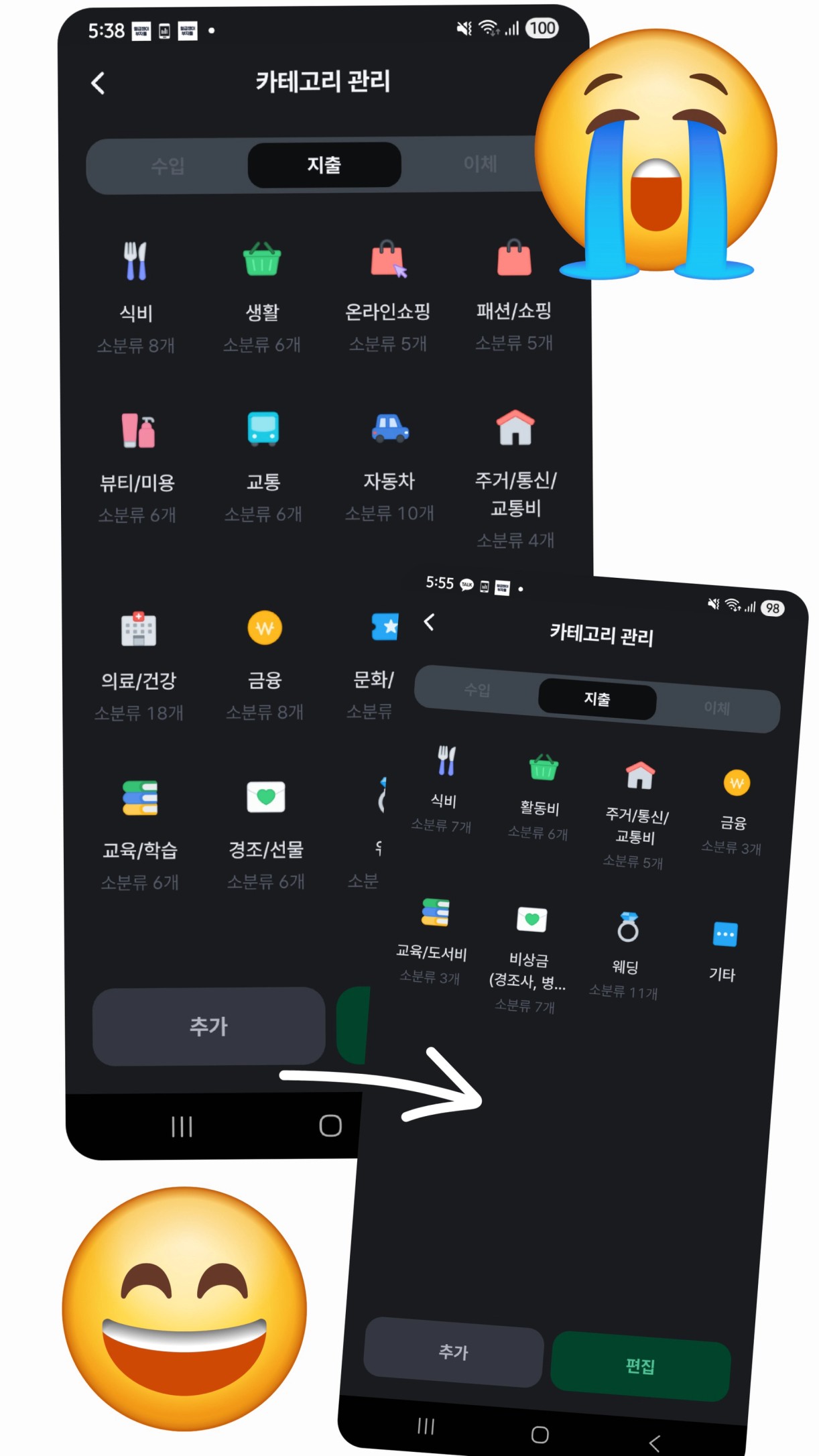 너나위님께서 알려주신 대로 항목을 간소화하니 지출을 관리(통제)하기가 훨씬 수월해졌다.