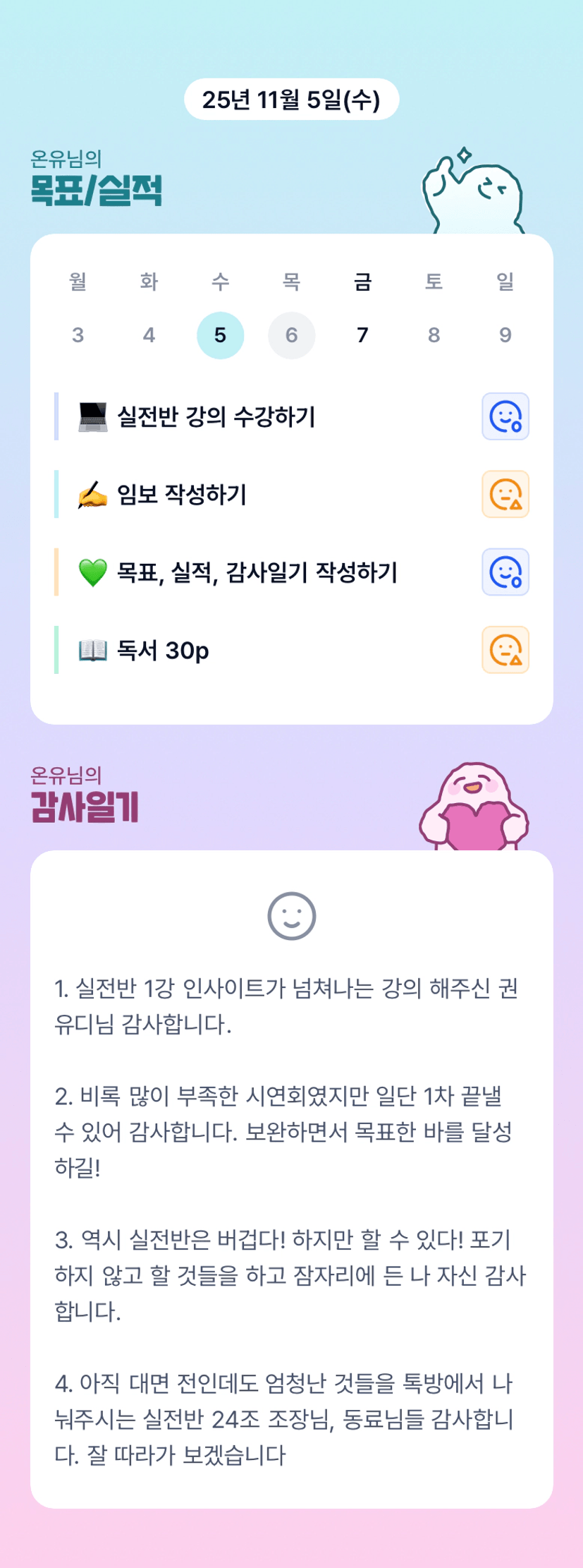꺄♡ 온유님 🫶💕 목소리 못들어서 아쉬워요 ㅎㅎㅎㅎ 내일 임장 잘 다녀오세요:)
