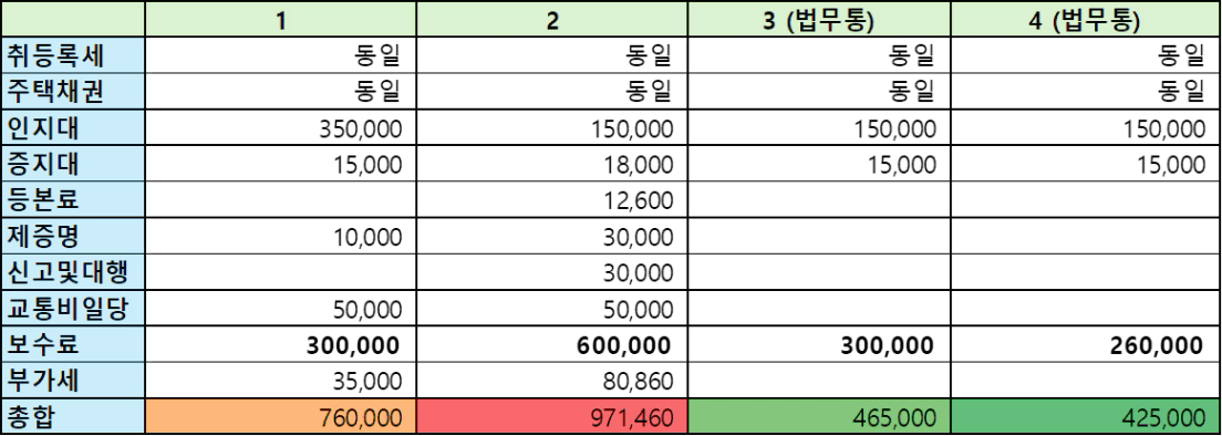 여러 체크리스트 중에서 법무사 견적비교에 대해 좀 더 자세히 써보겠습니다.