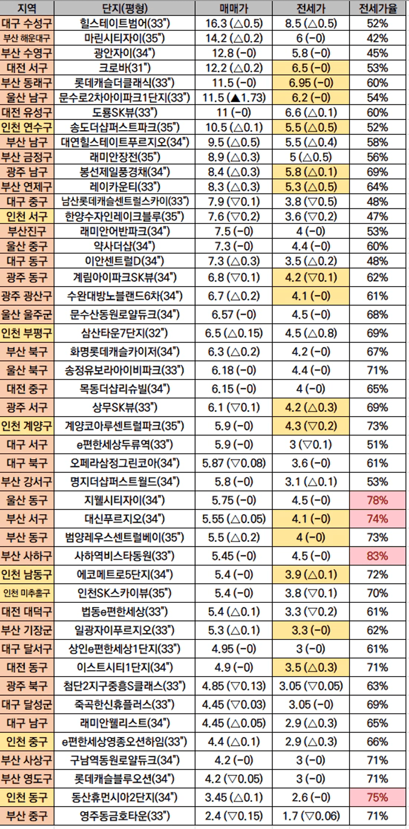 #광역시 랜드마크(대장)아파트 가격순 순위