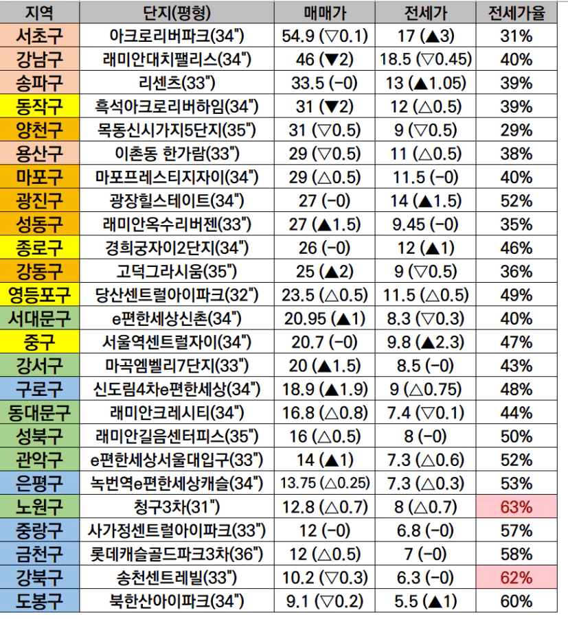 ※ 전국 랜드마크(대장) 아파트 순위 및 시세 :