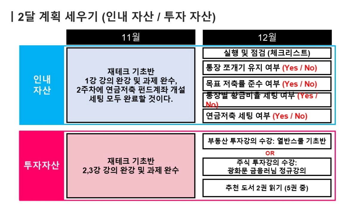 2️⃣ 2달 계획 확인 후, 11월 한달 간의 목표와 확언 부분 작성