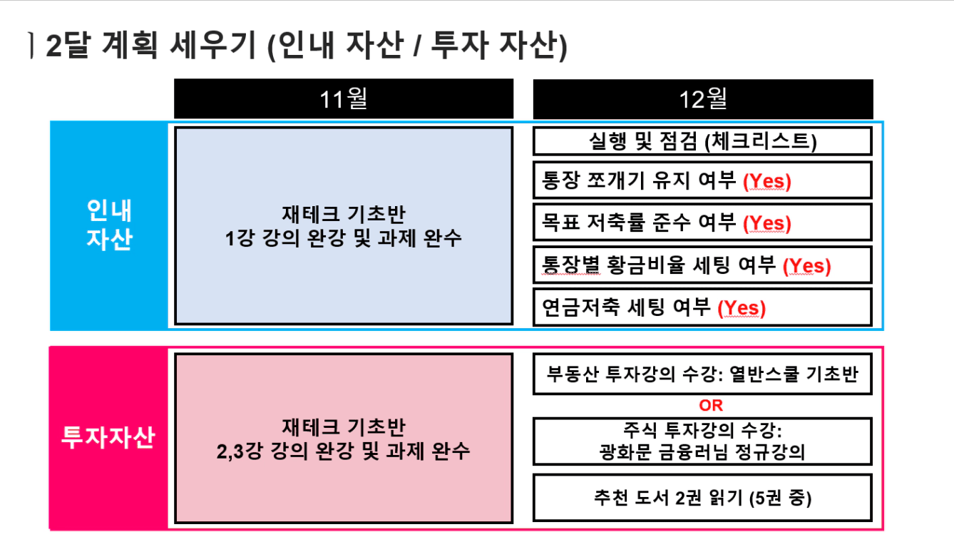 2️⃣ 2달 계획 확인 후, 11월 한달 간의 목표와 확언 부분 작성