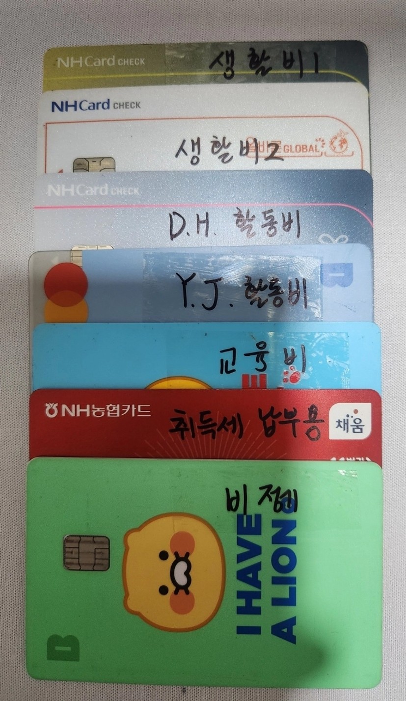 1. 용도별로 나눈 카드 인증샷 (모바일 통장쪼개기 인증샷도 좋아요!)