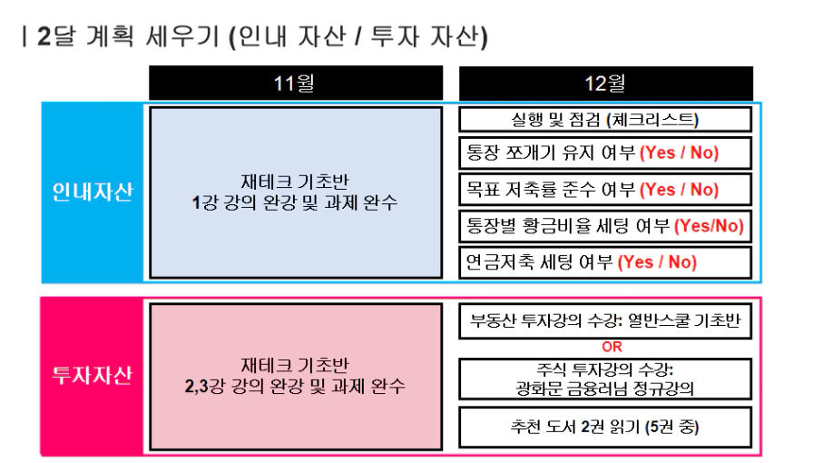 2️⃣ 2달 계획 확인 후, 11월 한달 간의 목표와 확언 부분 작성
