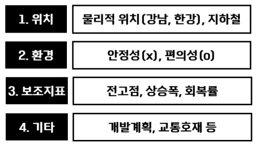 먼저, 사고자 하는 단지의 위치가 강남역 1시간 이내 접근이 가능하다면 아직까지 저렴할 확률이 높습니다. 이것이 가장 중요한 결정요소이며, 추가적으로는 환경적으로 비선호시설이 없고, 백화점 등의 편의시설이 있다면 더 좋습니다.