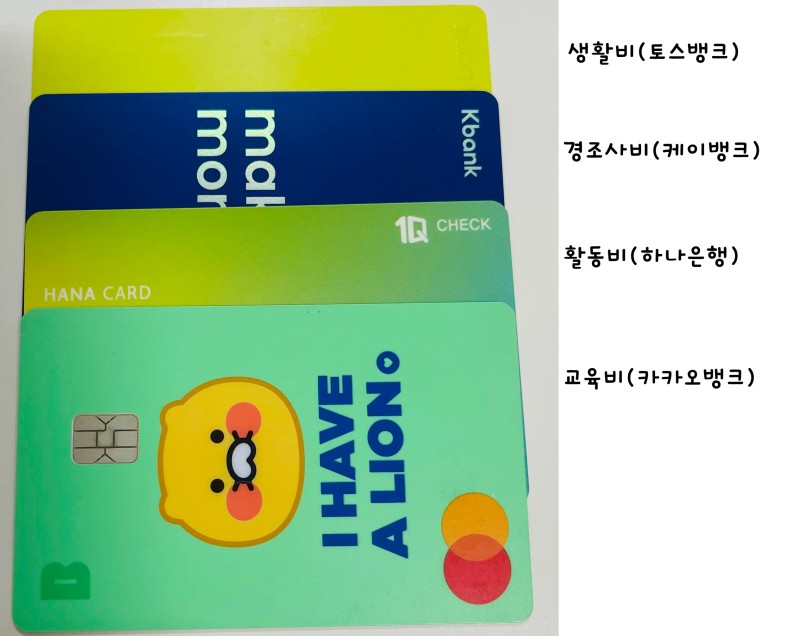 1. 용도별로 나눈 카드 인증샷 (모바일 통장쪼개기 인증샷도 좋아요!)