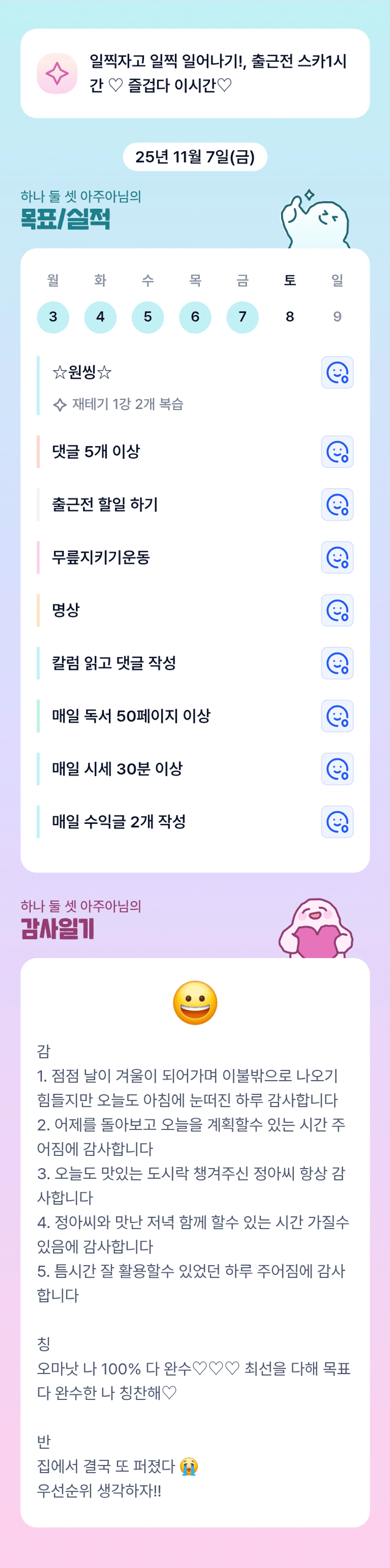 와~~목실감 정말 잘 지키고 계시네요 ~~~대단합니다