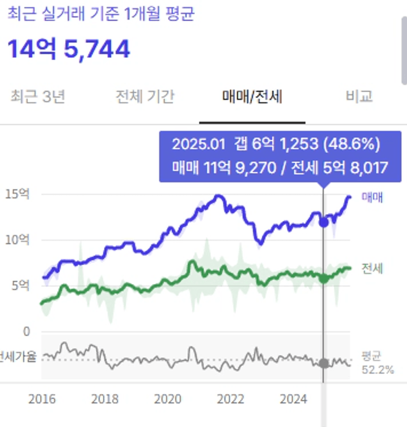 1년 새 벌써 1.5억 정도가 올라버렸습니다